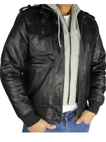 Crafted from 100% genuine lambskin leather, this men's leather jacket offers superior quality and style. The zip-up front provides easy wear, while the stand collar adds a touch of sophistication. The removable hood offers added protection from the elements. Featuring two zippered hand pockets, an interior chest pocket, and a comfortable quilted lining, this jacket is as practical as it is stylish. The slim fit creates a modern silhouette.